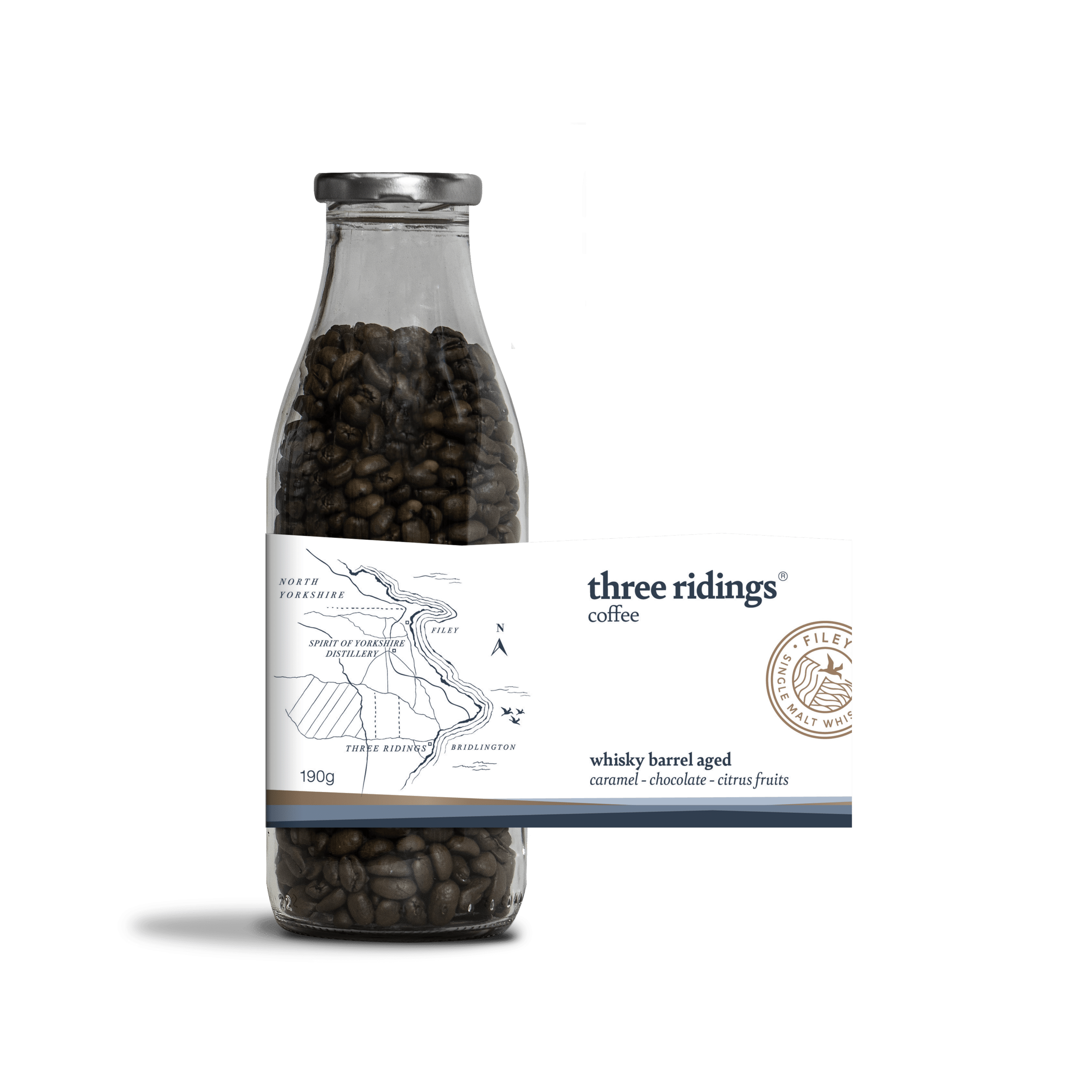 “We were thrilled when the team at Spirit of Yorkshire approached us again for a barrel-aged coffee project. We believe Yorkshire whisky and Yorkshire coffee are the perfect match. Selecting an ex-bourbon cask that held Filey Bay Flagship allowed us to create a coffee that truly complements this outstanding single malt whisky.” – Leo Jarvis of Three Ridings Coffee.