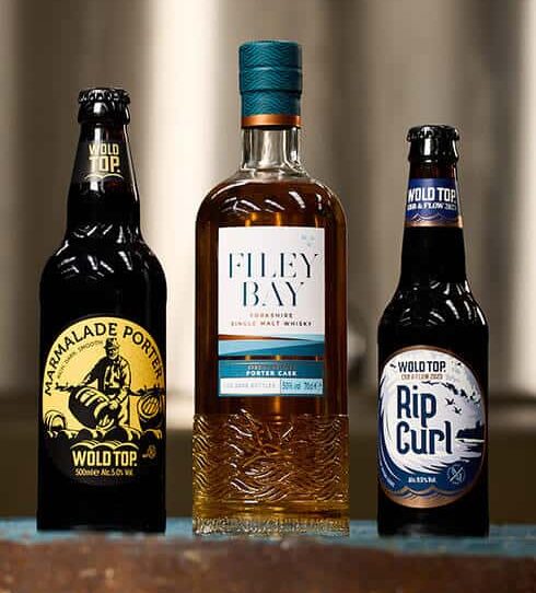 A long and careful process created this Filey Bay Special Release. Uniquely one-of-a-kind, we barrel-aged Wold Top Brewery’s award-winning Marmalade Porter in ex-Filey Bay whisky casks… (and then we used those ex-Porter Casks to mature our whisky). This beer is that result!